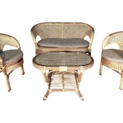 Комплект мебели для террасы 02/15 включает в себя: 2 кресла, плетеный двухместный диван, столик журнальный, подушки из материала улучшенного качества.