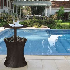 Очень популярный в Европе столик теперь и в России. Компактный столик, который может регулироваться по высоте, отлично подойдет для оформления зоны отдыха у бассейна. Плетение под ротанг сочетается с шезлонгами и мебелью Keter. Во внутреннюю емкость можно положить лед или налить холодной воды для поддержания температуры ваших напитков. При необходимости емкость можно использовать для любого другого хранения.